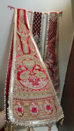 Presenting the Bandhani Chundadi by “KUMKUM IT’S HERITAGE” – a classic blend of traditional artistry and contemporary style. This exquisite chundadi, also known as dupatta, is designed to bring a touch of elegance and cultural richness to your wedding ensemble.