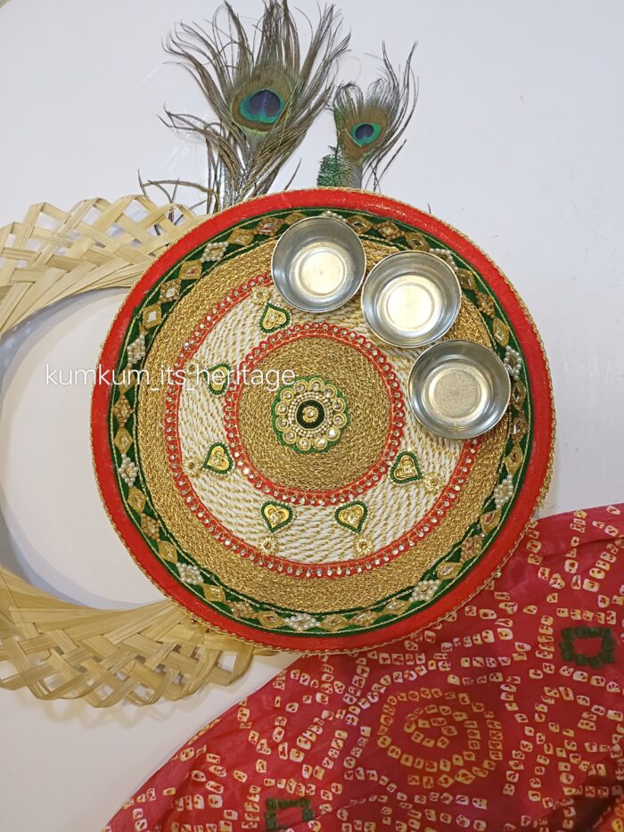 PURPOSE-Pooja thali used on karva chowth,diwali,merrage,engagement,and all festival used on hand made decorative pooja thali.