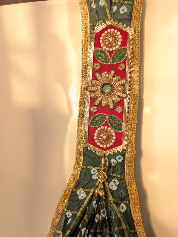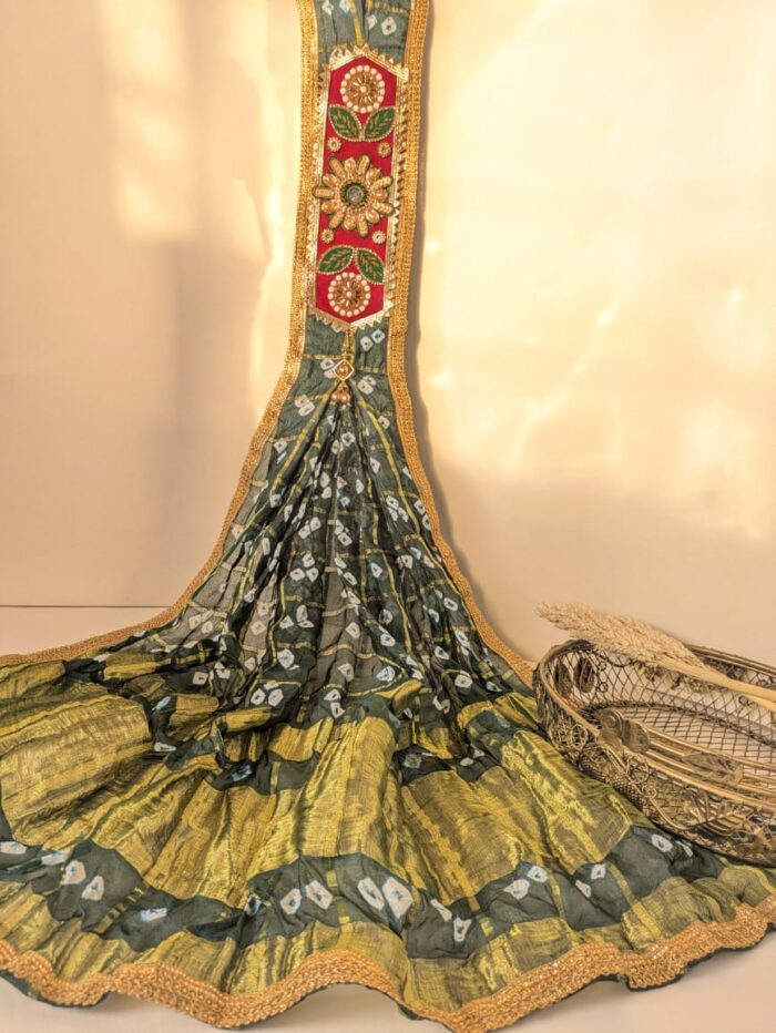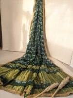 • Authentic Bandhani Work:Ā The accompanying Bandhani chundadi showcases traditional tie-dye techniques, each piece uniquely handcrafted by skilled artisans.